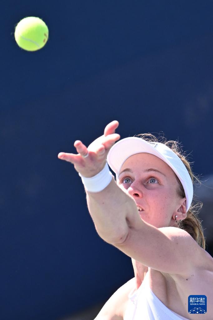 8月25日,萨姆索诺娃在比赛中回球。
